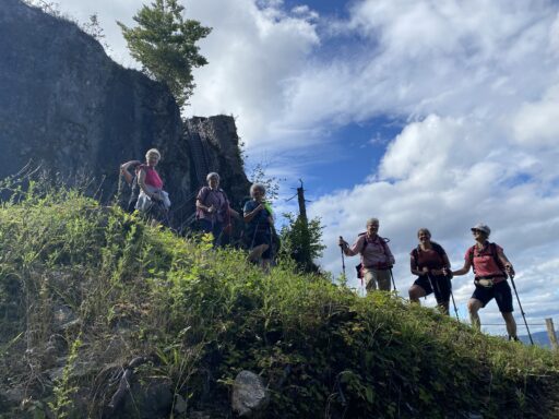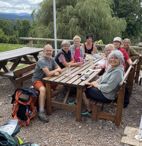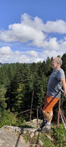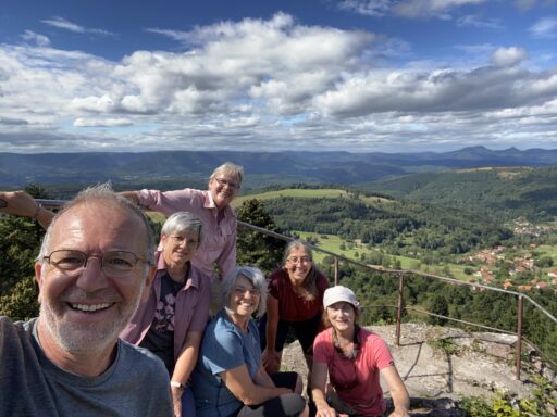 8 membres ont participé à cette 1ère randonnée post vacances, organisé par Marcel dans la haute vallée de la Bruche. Côté météo, une petite bruine pour dépoussiérer les imperméables et aérer les parapluies. Le reste de la journée était ensoleillé. Nous avons traversé des villages/hameaux pittoresques (Ranrupt, Fonrupt et Stampoumont). Nous avons tiré le repas du sac à la ferme du Fromont. Tout le long du parcours, des vues magnifiques sur le Donon, petit Donon, le rocher de Mutzig. Depuis le sommet du Château de la Roche nous avons admiré en contrebas, Bellefosse et une grande partie de la vallée. Bref, com d’hab…une belle journée