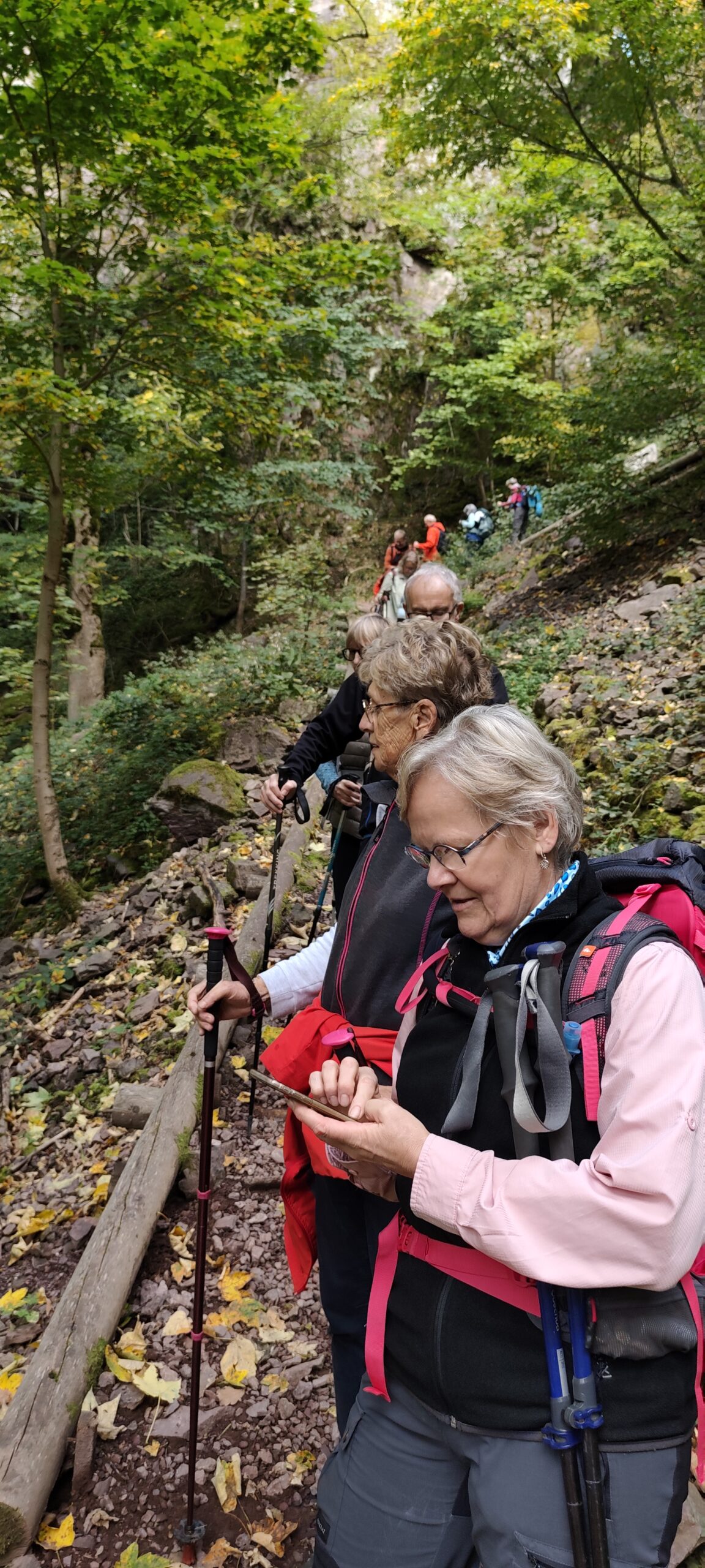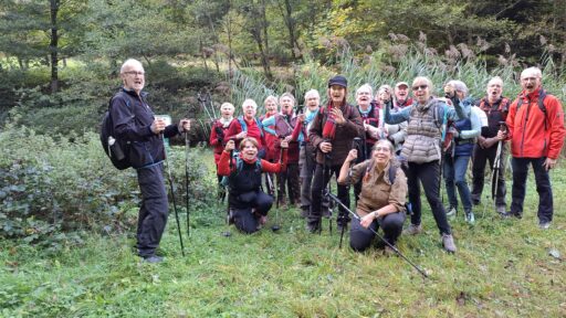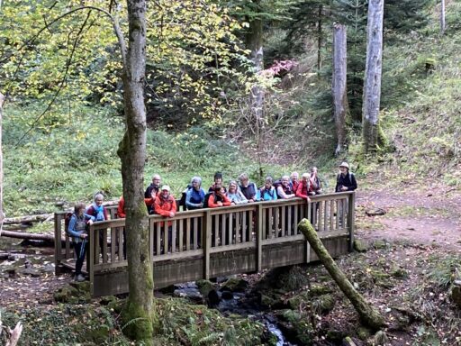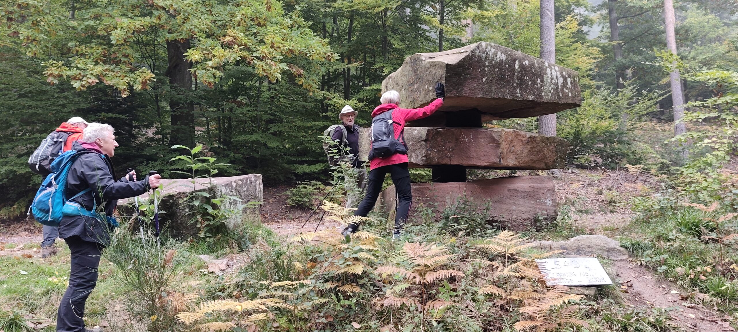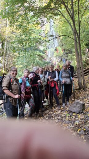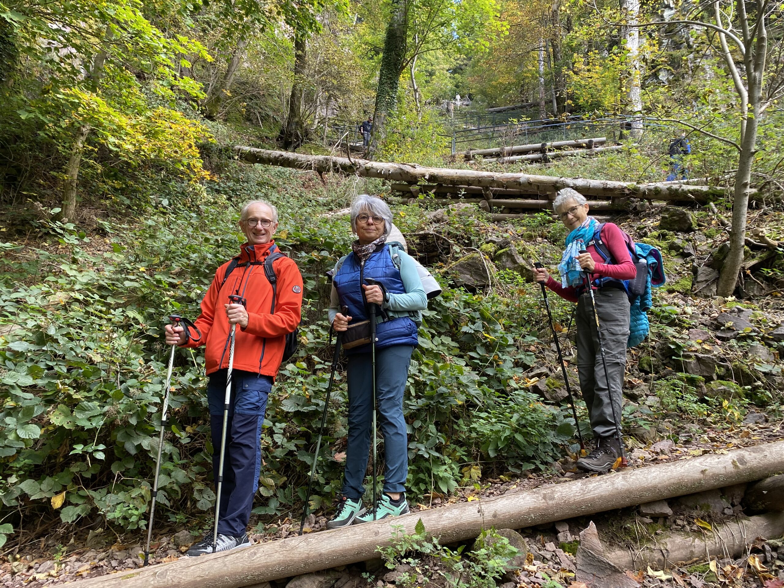 En cette belle journée d’automne nous étions une vingtaine de participants à braver les sentiers forestiers du secteur d’Oberhaslach. Au départ,un peu de fraîcheur matinale très vite oubliée par l’arrivée du soleil qui ne nous a accompagné jusqu’à a fin de la randonnée. En longeant le »Sandweg », nous avons pu admirer certaines des fameuses sculptures dites des géants installées entre 2002 et 2010 aux abords de ce chemin (GR5) . Nous sommes ensuite passé par le château ruinés du Hohenstein, la MF du Nideck, le château puis la cascade du même nom. Un repas de saison nous attendais à l’auberge de la cascade ou nous avons été accueilli chaleureusement.