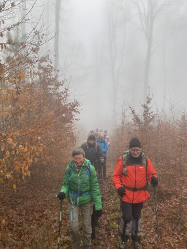 C’est par une journée plutôt maussade où le brouillard ne nous a pas beaucoup quitté, que nous avons fait notre dernière randonnée de l’année 2025 mais comme d’habitude l’ambiance était chaleureuse.